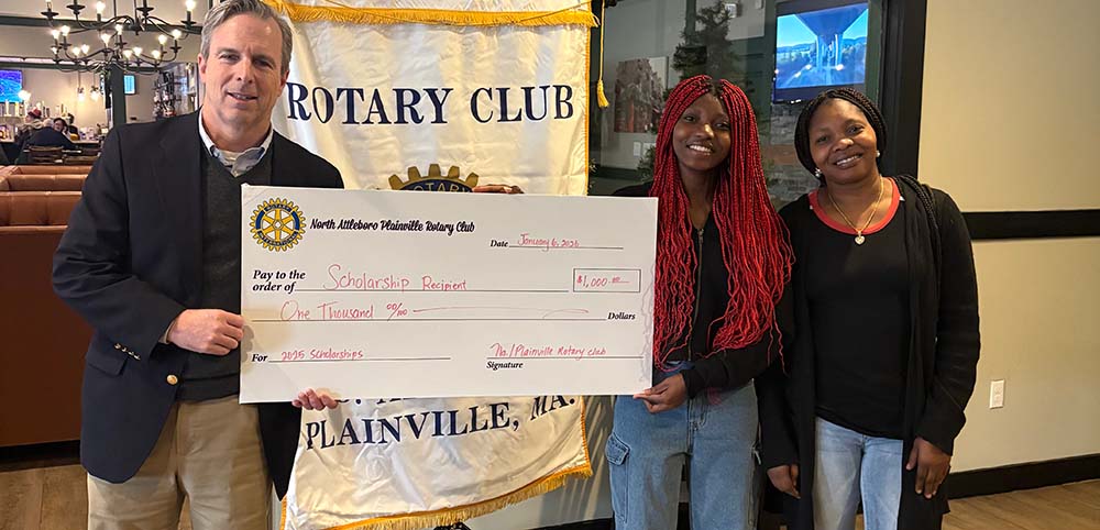 The North Attleboro/Plainville Rotary Club recently awarded its annual scholarships to students from North Attleboro High School and King Philip Regional High School. Not pictured are additional scholarship winners from Tri-County Regional Vocational Technical High School and Bishop Feehan High School. Rotary Club President Sean Carroll (Left) presented the awards at a luncheon honoring the recipients and family members.